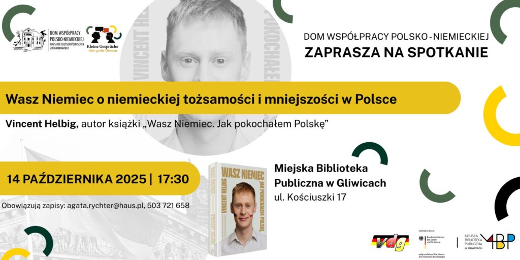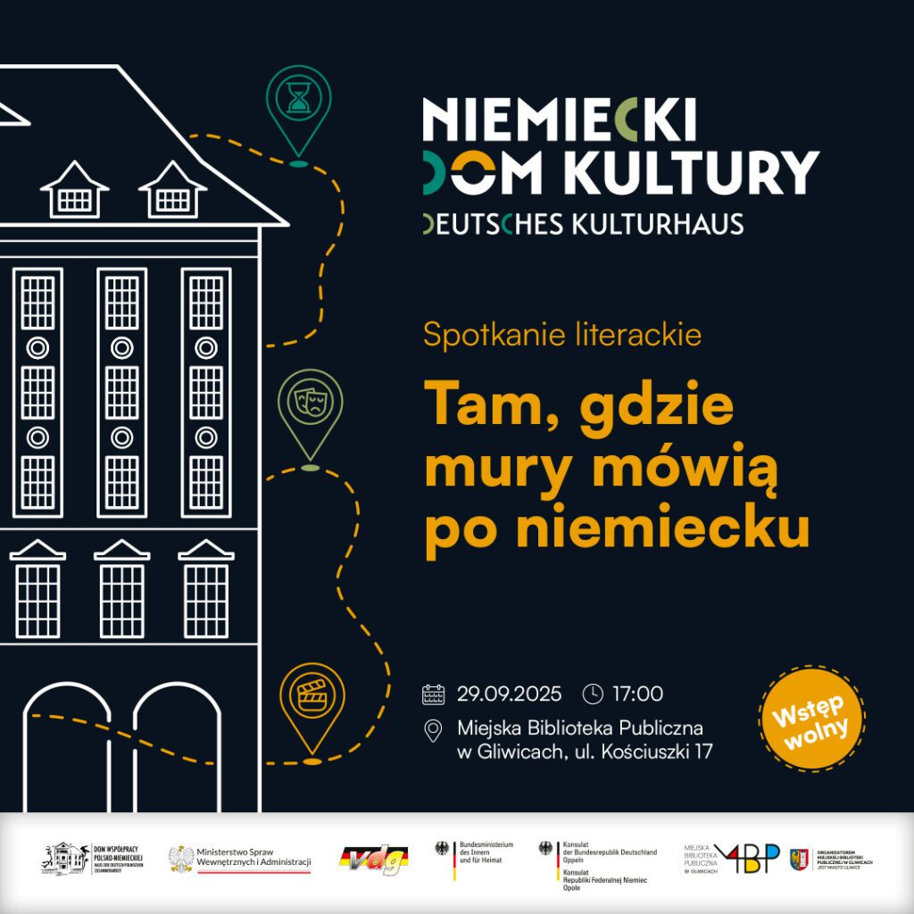 14 października 2025, godz. 17:30Miejska Biblioteka Publiczna w Gliwicach, ul. Kościuszki 17 Dom Współpracy Polsko–Niemieckiej