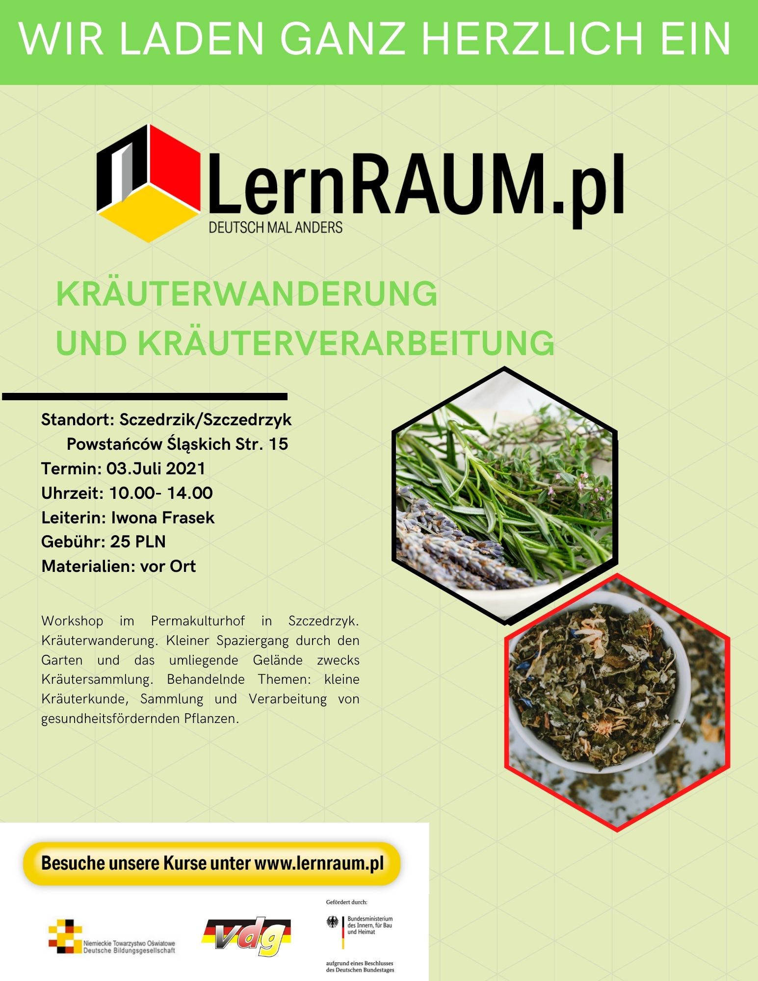 Zachęcamy do wzięcia udziału w warsztatach LernRAUM.pl w dniu 3 lipca 2021 r. , które odbędą się w Szczedrzyku.